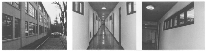 动,这种方式对人坐立位置的高度影响较大。针对文远楼主要做为人群密集的学习工作场所,因此采用上悬的开窗方式。所示为外立面上悬窗和室内走廊通风口。
